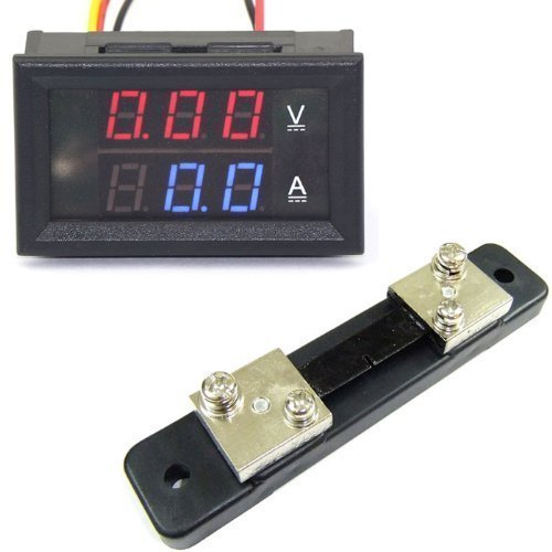 KAUFEN DROK® Mini Digital-Amperemeter / Voltmeter Dual Display Strom Spannung Tester DC 0-100V / 50A Autobatterie Monitor LED-Anzeige mit Current Shunt (rot / blau)