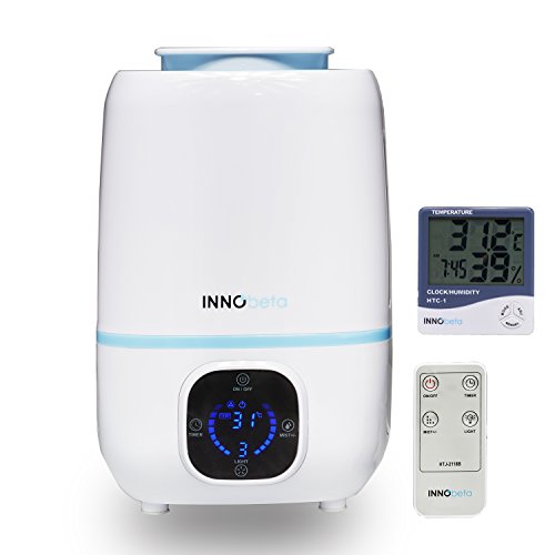 Verkauf InnoBeta Fountain 3.0 Liter Ultraschall Kühler Nebel Luftbefeuchter, Aroma Diffuser - Leise, Automatische Abschaltung, Langanhaltend, mit LED Anzeige Touchpad und Fernbedienung (Blau) + Bonus Thermometer Hygrometer Uhr