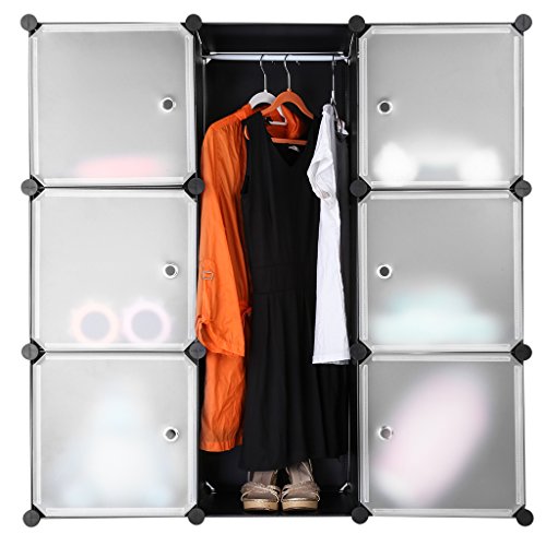 Magnetische Verschlüsse (Zusätzliche Stücke werden bereitgestellt, falls Sie etwas verlieren)Modern Kleiderschrank: bestehend aus schwarzen Platten und transluzenten Tür, der Regal fügt einer moderne, frische Stil, egal wo Sie es platzieren.
