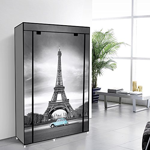 EBS® Tragbare Non Woven Canvas Stoff Kleiderschrank Faltschrank /Lagerung 5 Regale - Eiffelturm 105 x 45 x 158 cm