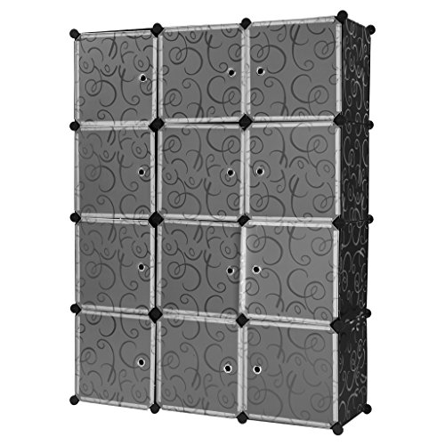 Verkauf Finether Steckschrank Steckregal Regalsystem Steckregalsystem DIY Cube Regal mit Türen und mit Kleiderstange aus Kunststoff schwarz & transluzent 12 Fächer 111 x 147 x 37 cm | Wohnregal Stehregal Standregal Kleiderschrank Schuhschrank Aufbewahrungsregal für Kleidung Schuhe Spielzeug Bücher